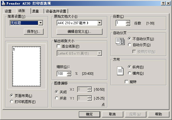 方正A230黑白激光打印机打印首选项